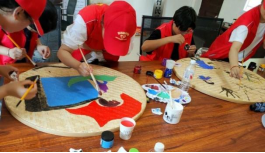 向老人献画 为姬庄村电商平台绘制宣传竹匾