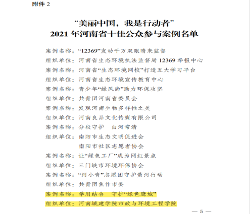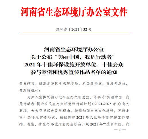 (通讯员:杨冰 邢智洋)6月2日,河南省2021年六五环境日系列宣传活动开幕式暨表彰大会在河南省生态环境厅三楼会议室举行,会上揭晓了“河南出彩环保人”、十佳环保设施开放单位、十佳公众参与案例、生态环境优秀创意作品和优秀摄影作品。河南省政协副主席朱焕然,河南省生态环境厅党组书记、厅长王仲田,河南省人大环资委主任委员、常委会环资工委主任朱长青,河南省委宣传部二级巡视员牛素玲、河南省教育厅副总督学黄才华分别为获奖单位和个人颁奖。由公司365英国上市公司申报的“学用结合守护绿色鹰城”案例荣获河南省2021年十佳公众参与案例并在主会场接受表彰。