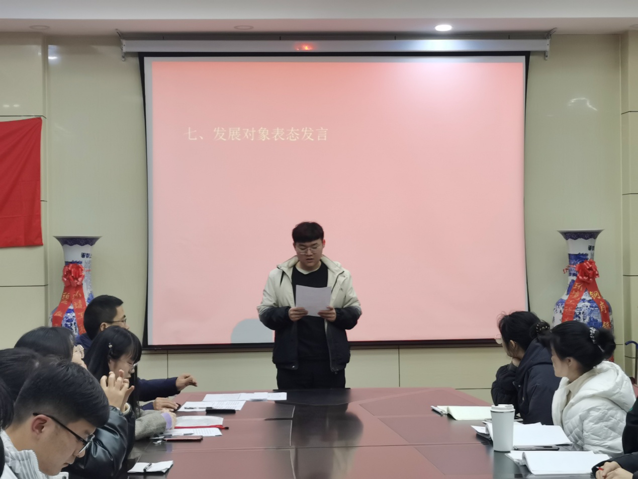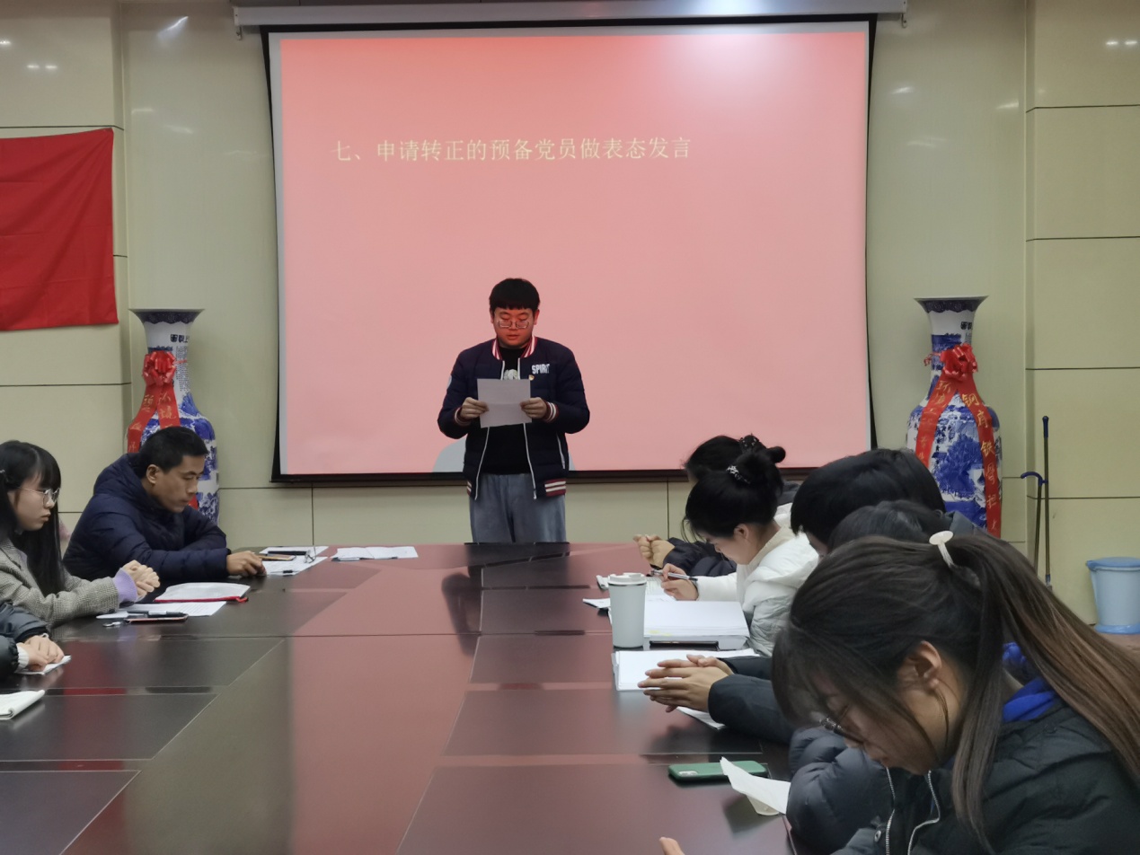 (通讯员 冯兴华)12月23日,员工第一党支部在9A315会议室召开党员大会,讨论研究张军政等10名同志入党和边一凡等9名同志转正问题。大会应到正式党员14人,实到13人,1人请假。会议由支部书记冯兴华主持。