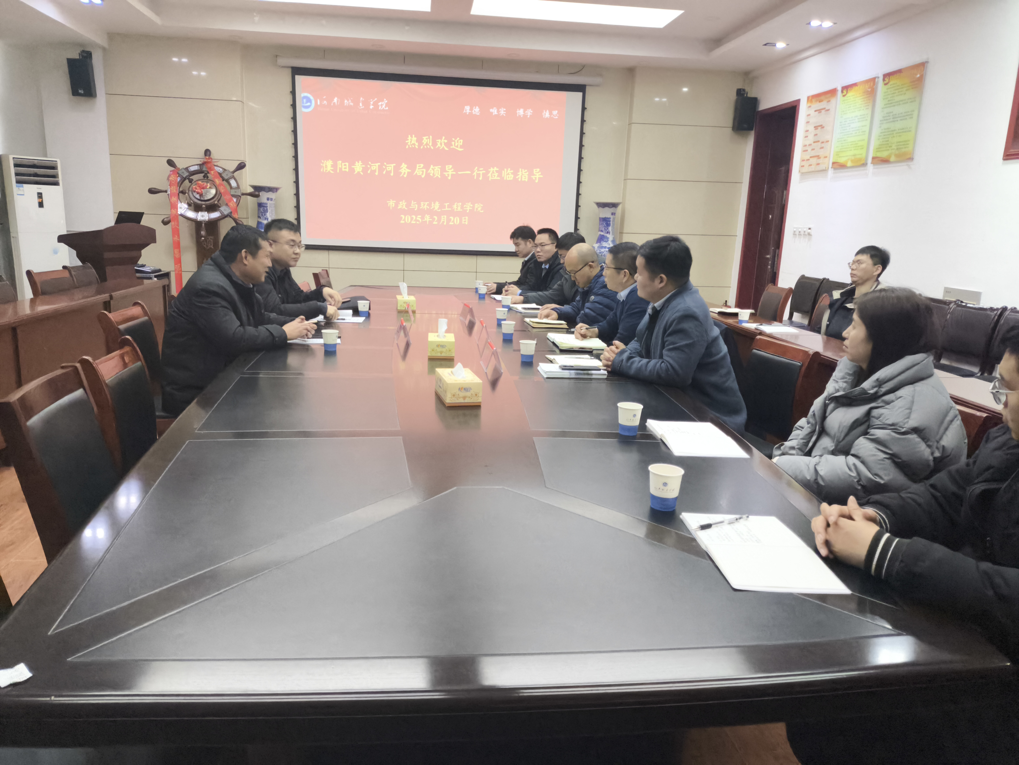 2月20日,濮阳黄河河务局第一河务局副局长崔巍巍一行来公司考察交流。崔巍巍一行考察了河南省水体污染防治与修复重点实验室、河南省绿色低碳水处理技术与水资源利用国际联合实验室等科研平台并进行了座谈交流。365英国上市公司经理姜忠峰、副经理宋忠贤、河南城院卓越综合设计研究院有限公司总经理张东令、公司各系主任以及科研办等相关人员参加了座谈交流。
