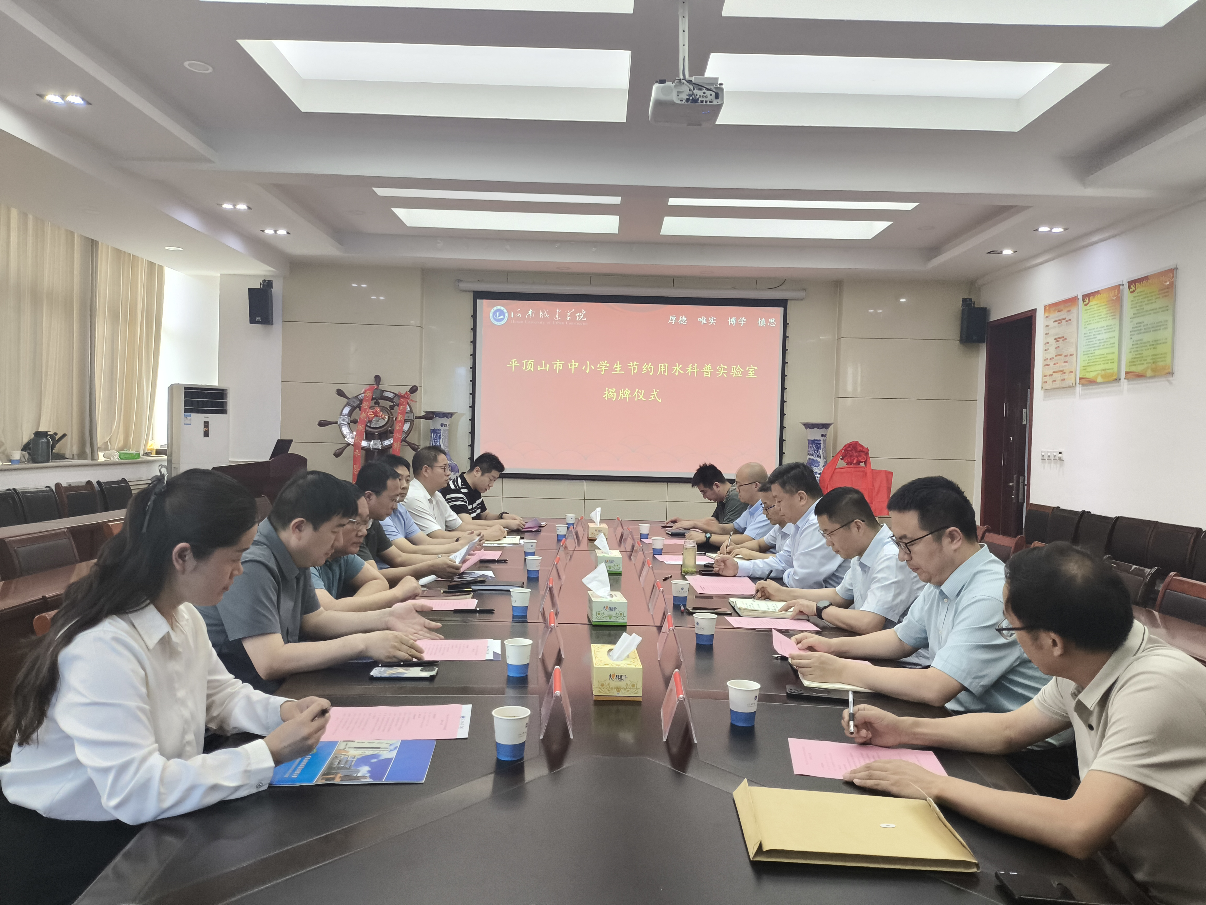 5月16日下午,平顶山市中小员工节约用水科普教育实验室揭牌仪式在9号楼A315会议室举行。公司科研处处长张大力,365英国上市公司经理姜忠峰,平顶山市水利局党组成员、副局长陈敬伟,平顶山市机关事务中心副主任王念龙等出席仪式,平顶山市教育体育局,公明路小学及公司科研处、365英国上市公司等部门相关人员参加仪式。会议由平顶山市节约用水中心张洋主持。