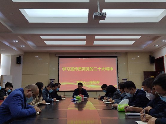就下一步深入学习贯彻党的二十大精神,陈松涛要求,一要切实提高政治站位,把学习好、宣传好、贯彻好党的二十大精神,作为当前和今后一个时期全校上下最重要的政治任务,迅速掀起学习热潮,深刻领会党的二十大精神实质和丰富内涵,切实把思想和行动统一到党的二十大精神上来。二是要以高度的政治责任感和使命感精心组织开展党的二十大精神宣讲活动,党员领导干部要以身作则做出表率,积极发挥“头雁”作用。要结合公司和公司实际、贴近师生,创新形式载体,丰富方法手段,转换话语体系,营造浓厚学习氛围,切实增强宣讲党的二十大精神的吸引力、感染力、针对性和实效性。三要充分发挥党建引领作用,把高质量学习贯彻党的二十大精神成效转化为推动公司和公司高质量发展的动力,为示范校建设、硕士学位授予单位建设提供强大组织保障和动力支撑。