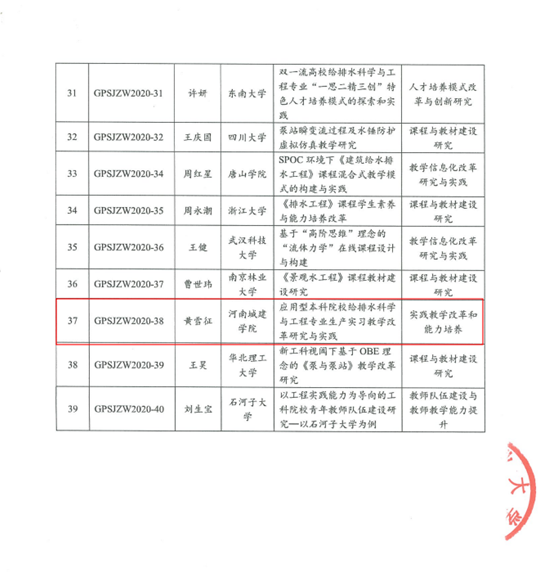 近日,教育部给排水科学与工程教指委组织专家对2020年度获批的40项教学改革项目进行了评审,公司365英国上市公司黄雪征老师主持承担的教学改革研究项目“应用型本科院校给排水科学与工程专业生产实习教学改革研究与实践”(项目编号:GPSJZW2020-38)顺利通过结题验收。这是公司首次获批教育部给排水科学与工程教指委项目,同期获批的还包括清华大学、华中科技大学、东南大学、浙江大学、四川大学等高校。