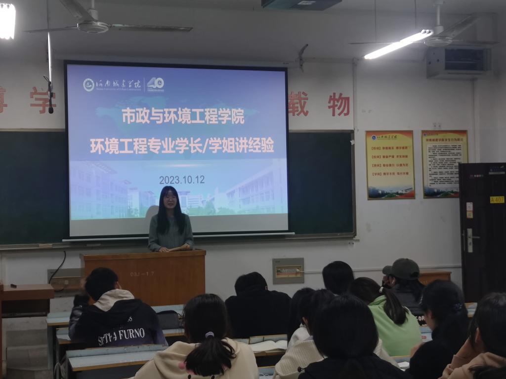一线企业人员从教师、企业和员工三个角度展开专业介绍,告诉新生从事环保行业的重要意义,帮助员工以建、需、学三点出发构建对专业的全方位认知。21级学姐师梦瑶和2022级学姐白汶玉作为优秀员工代表为新生分享国家奖学金和国家励志奖学金成功经验,详细点出了申报国家奖学金的重点,以及个人心得。