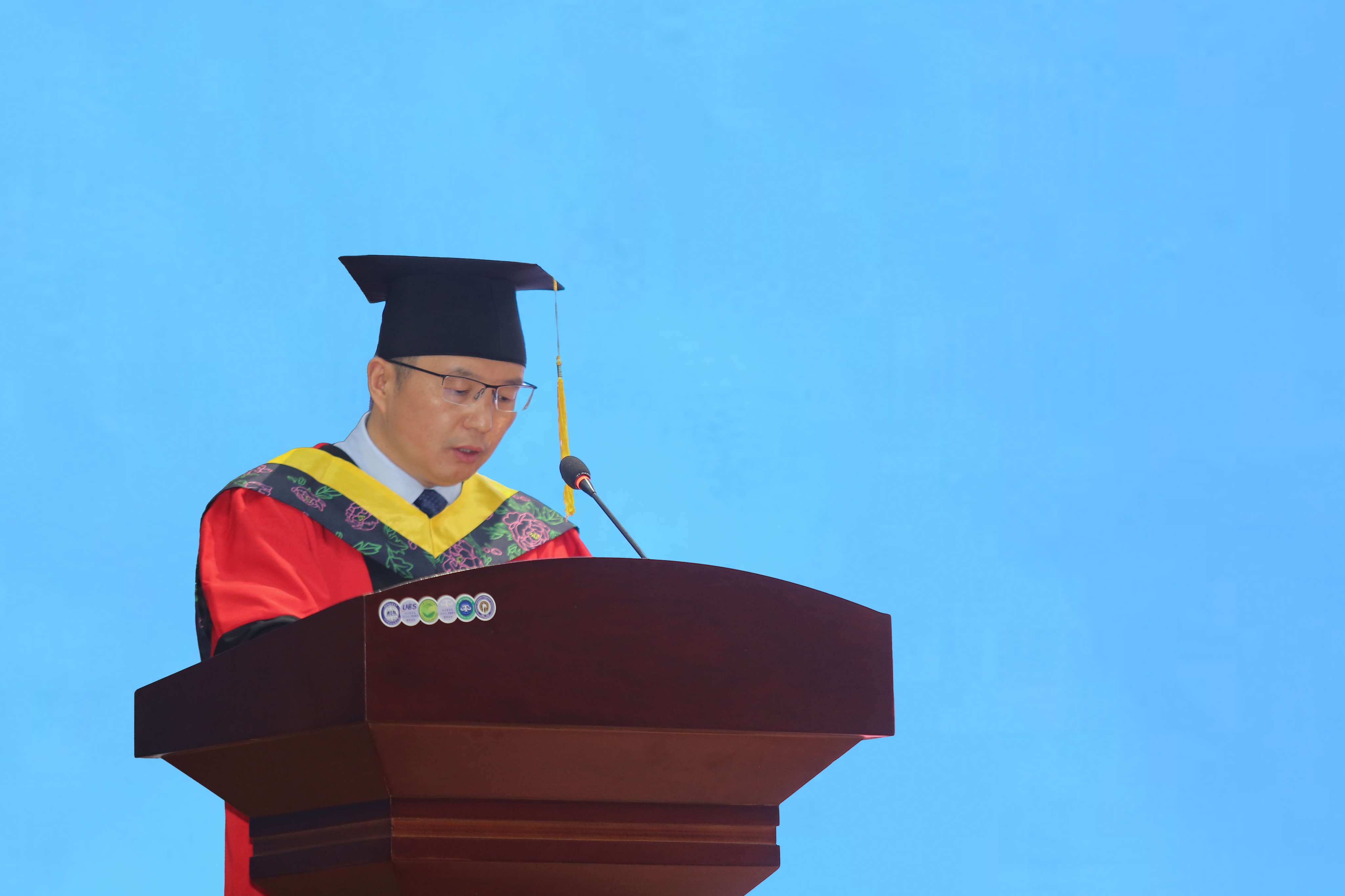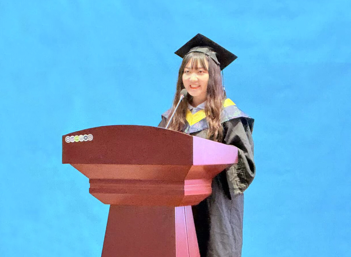教师代表娄全博士发言回顾了同学们在校期间的成长与收获,向2025届毕业生表示祝贺、并寄予了美好祝愿。毕业生代表郎禹晴上台发言表达了对母校和师长的感激之情,回顾了与同窗共度的难忘时光,并展望了对未来的憧憬。