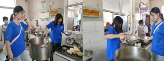 队员们走进食堂,协助工作人员准备餐食,清洗餐具、盛饭舀汤,有条不紊,为老人的饮食保障提供助力,让食堂里的烟火气,添了几分温暖的志愿底色。